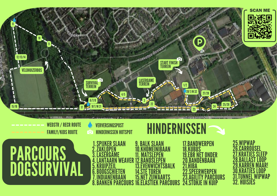 terrein (bij de Edese IJsvereniging) en bij het terrein van Survivalteam Ede, waar spectaculaire obstakels staan opgesteld.